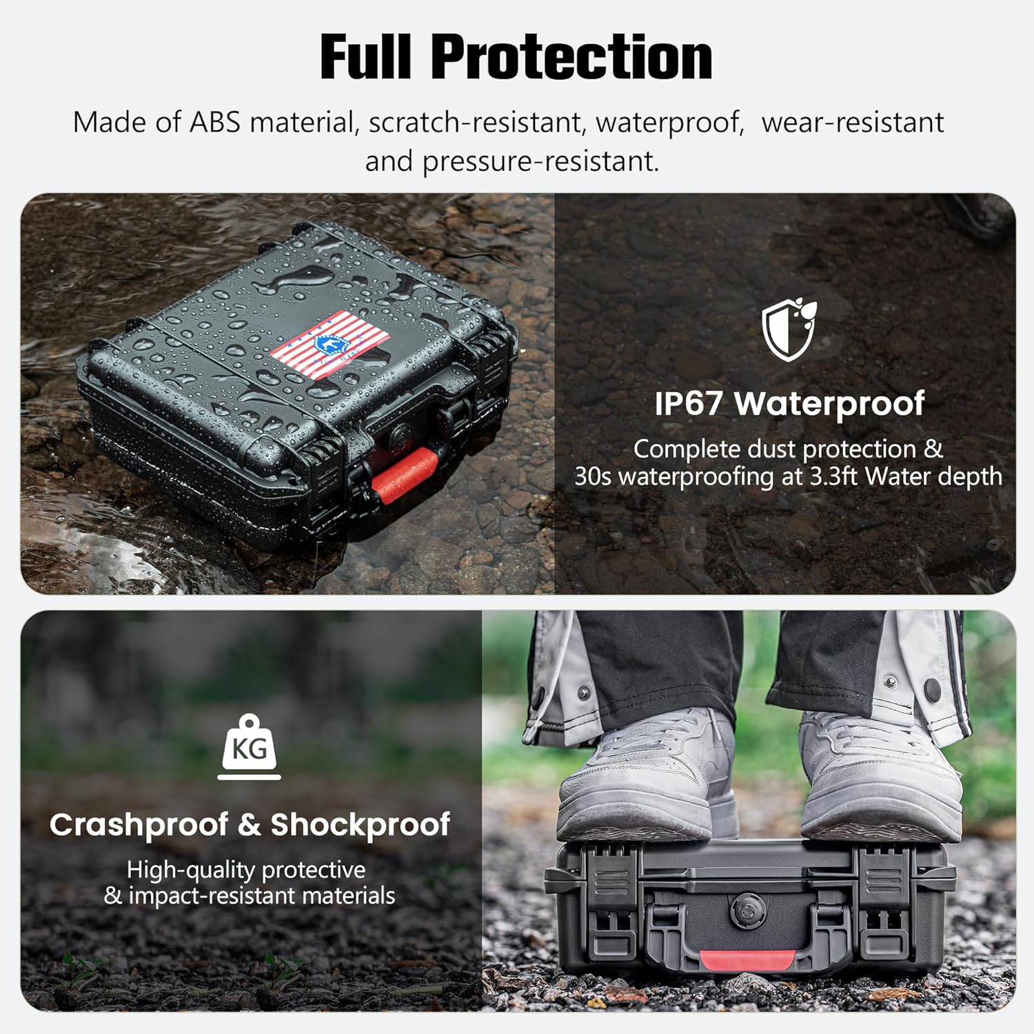 - 【𝐈𝐏𝟔𝟕 𝐖𝐚𝐭𝐞𝐫𝐩𝐫𝐨𝐨𝐟 & 𝐃𝐮𝐬𝐭-𝐑𝐞𝐬𝐢𝐬𝐭𝐚𝐧𝐭】 Handgun case boasts an impressive IP67 rating, making it both shockproof and waterproof. This secure case keeps firearms safe up to 1 meter submerged, The O-ring seal prevents dust and water from entering, keeping your pistol and magazines dry and clean, thereby extending their lifespan.