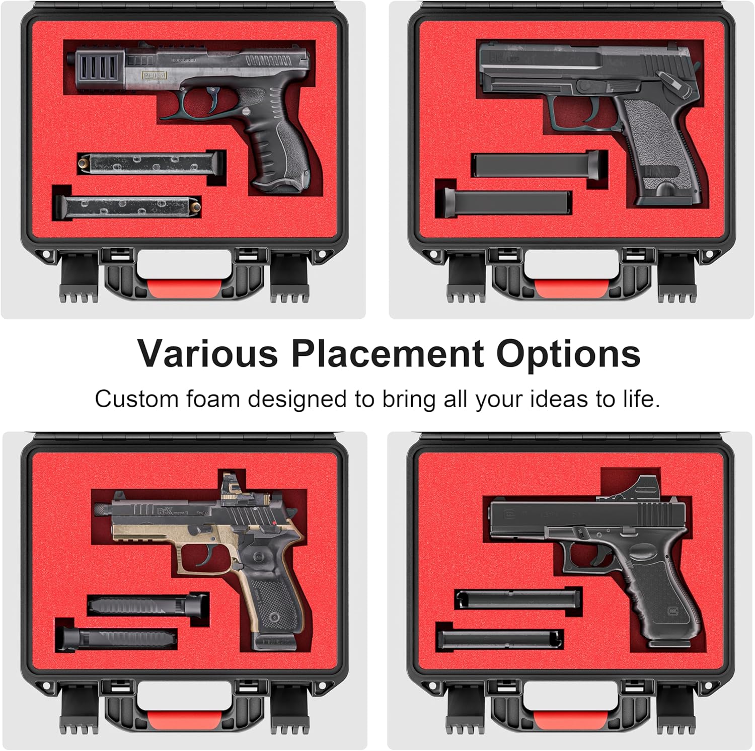 - 【𝐏𝐫𝐨𝐭𝐞𝐜𝐭𝐢𝐯𝐞 𝐃𝐈𝐘 𝐅𝐨𝐚𝐦】The customizable DIY foam easy to change the internal layout to store different pistols and magazines, meeting your personalized needs. The double-layer foam is designed with moderate hardness to minimize impact damage and scratches, ensuring safe and comfortable equipment.